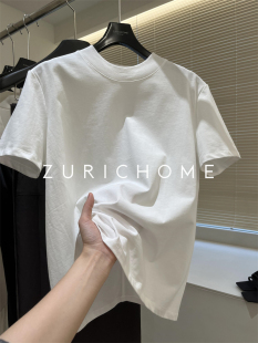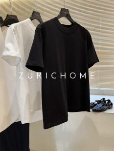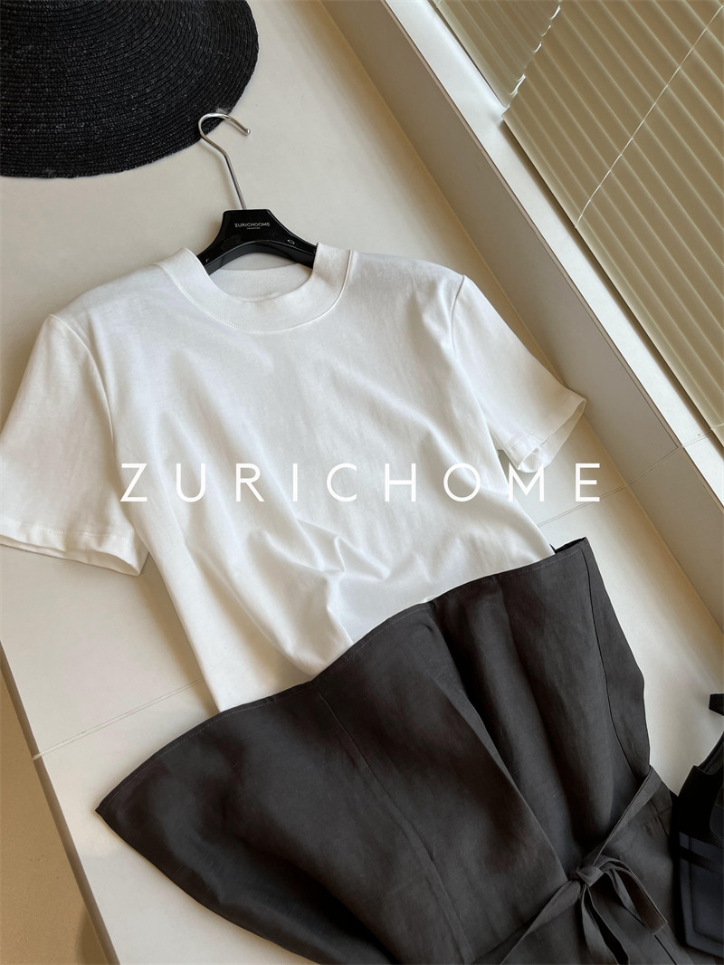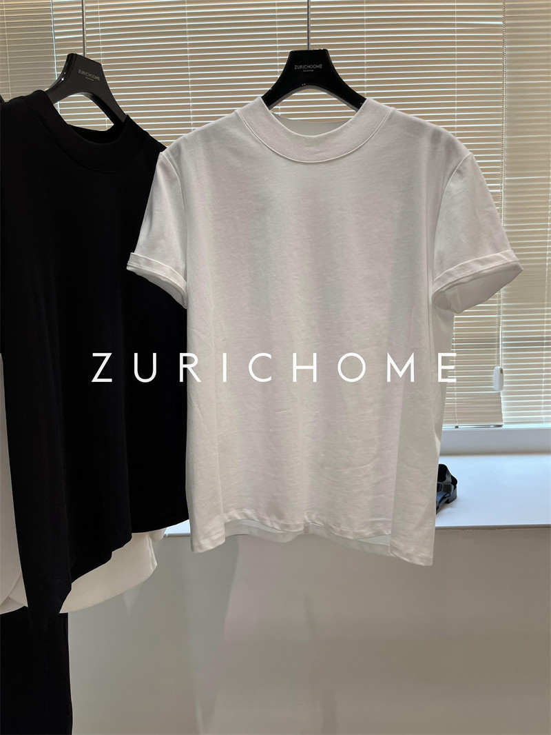 后中线半高领棉质t恤 剪裁干净利落 别致宽领口 高及简约小厚款