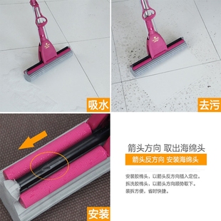 妙洁巨易吸拖把头35加宽加长大号胶棉拖把头海绵头滚轮式 替换拖头
