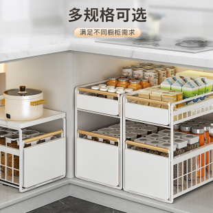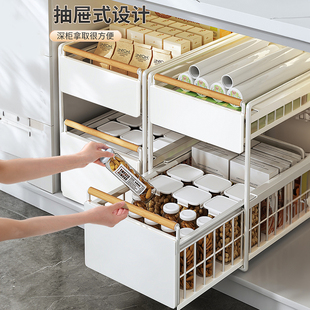佳帮手超深抽拉置物架厨房调料抽屉式 收纳架橱柜拉篮下水槽分层架