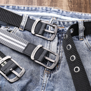 带学生青年韩版 裤 百搭军训皮带 女士休闲工装 加长多孔帆布腰带男士