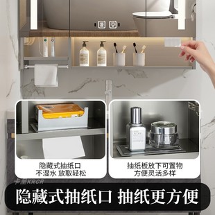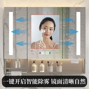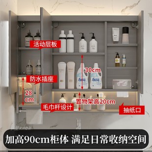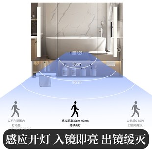 不锈钢人体感应智能浴室镜柜带灯挂墙式 抽纸900高镜子毛巾杆镜柜