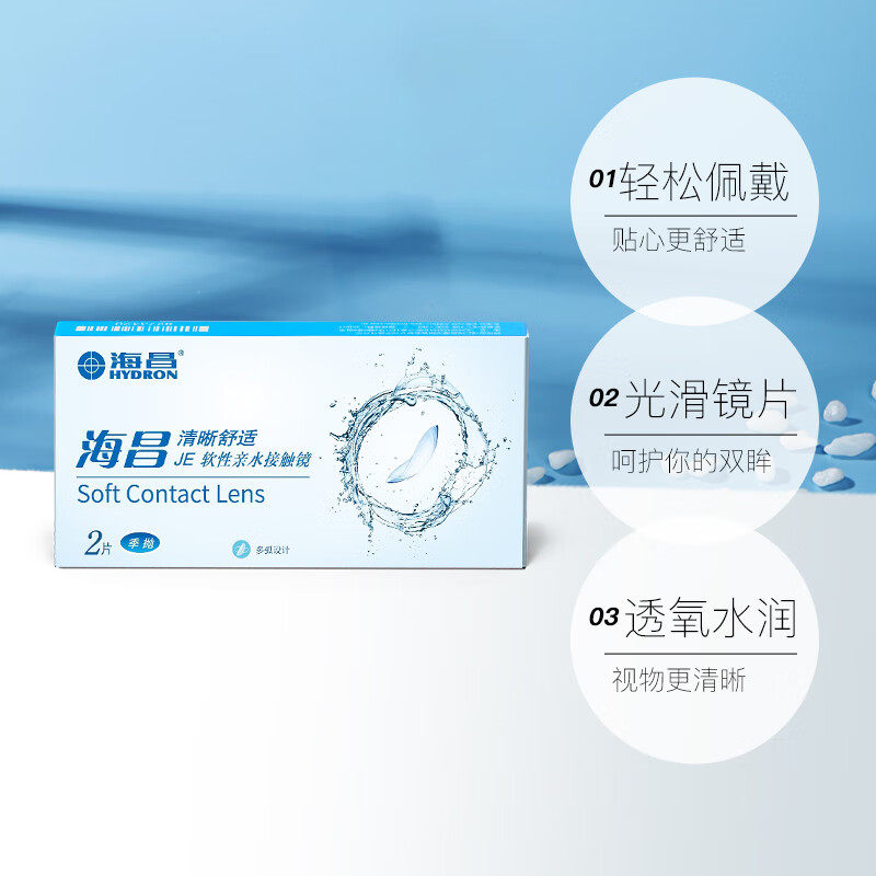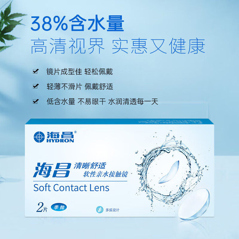 海昌高清水润半年抛1 2片隐形近视眼镜轻盈舒适透明镜片官方正品