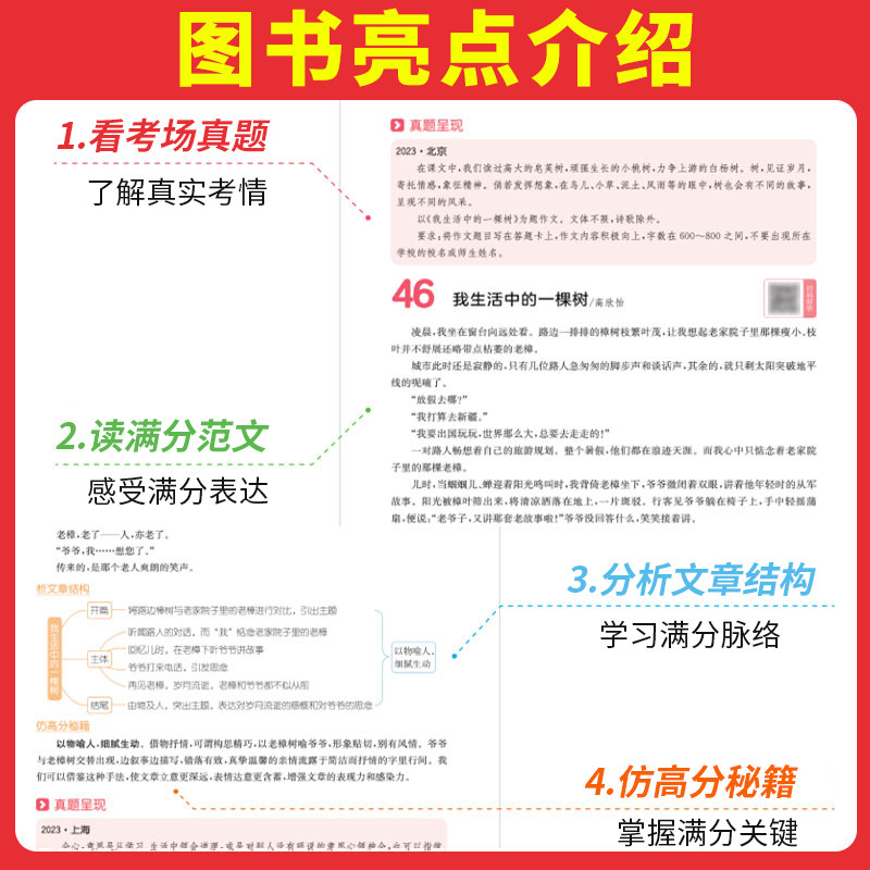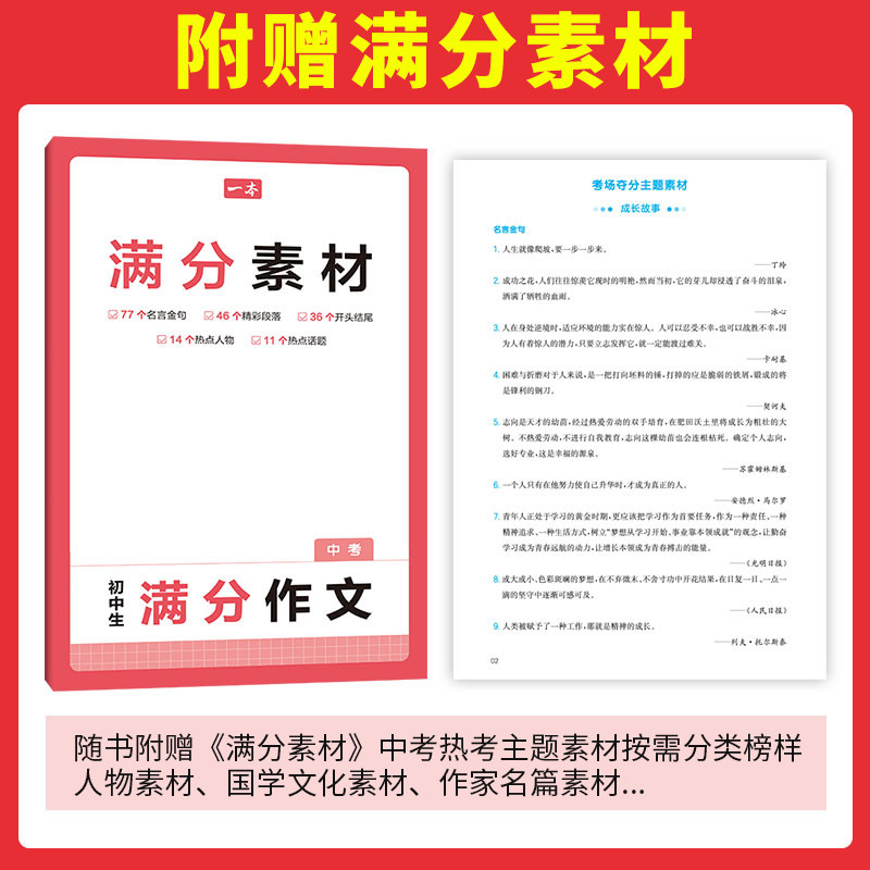 26版 一本初中生满分作文语文英语热考素材文言文完全解读古诗文默写七八九年级中考高分范文精选