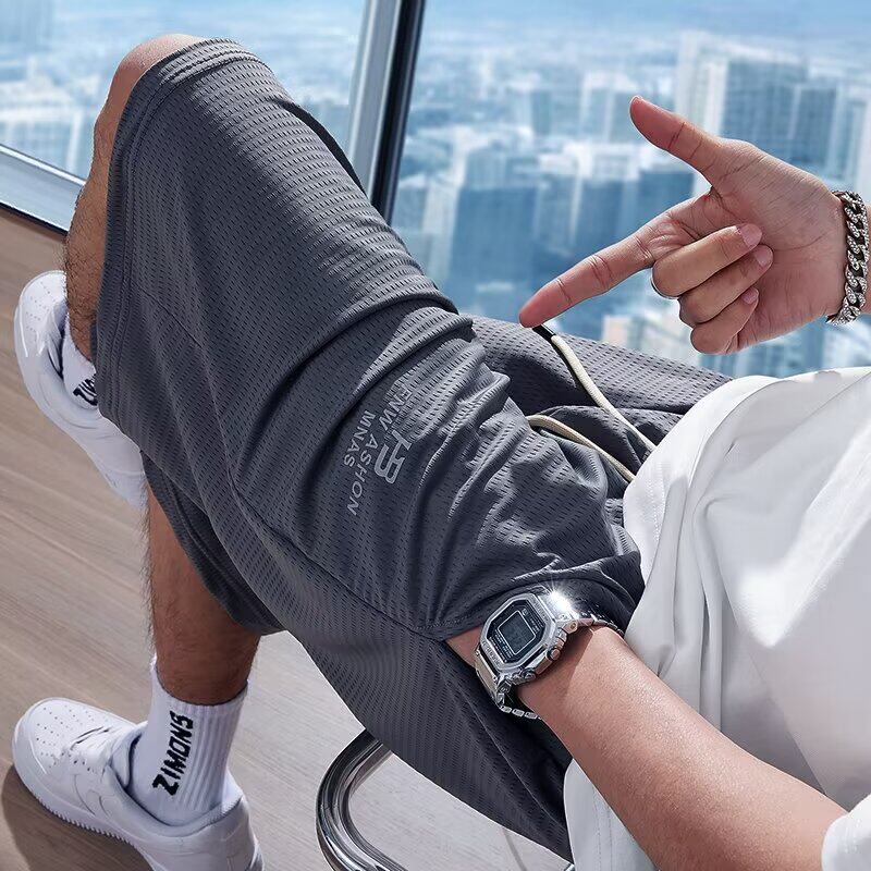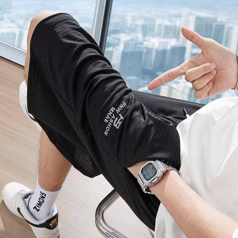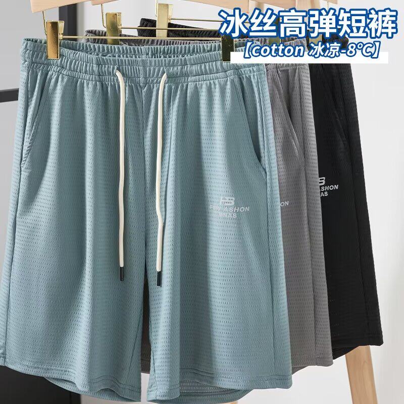 冰丝网眼透气短裤 运动空调五分裤 男夏季 弹力宽松大码 薄款 2024新款