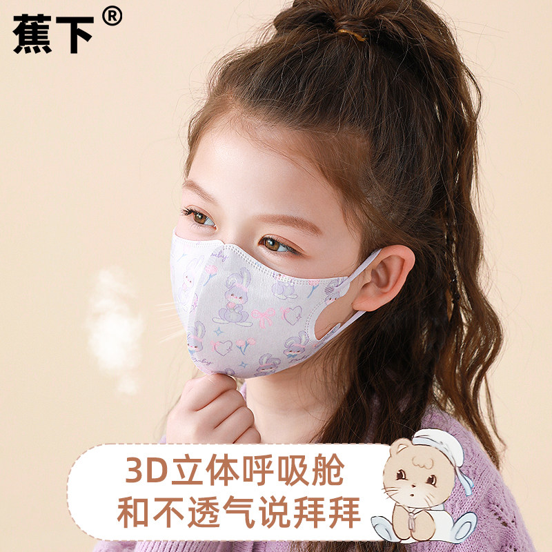 蕉下口罩一次性儿童3d立体高颜值女透气独立包装 防尘口罩小学生男