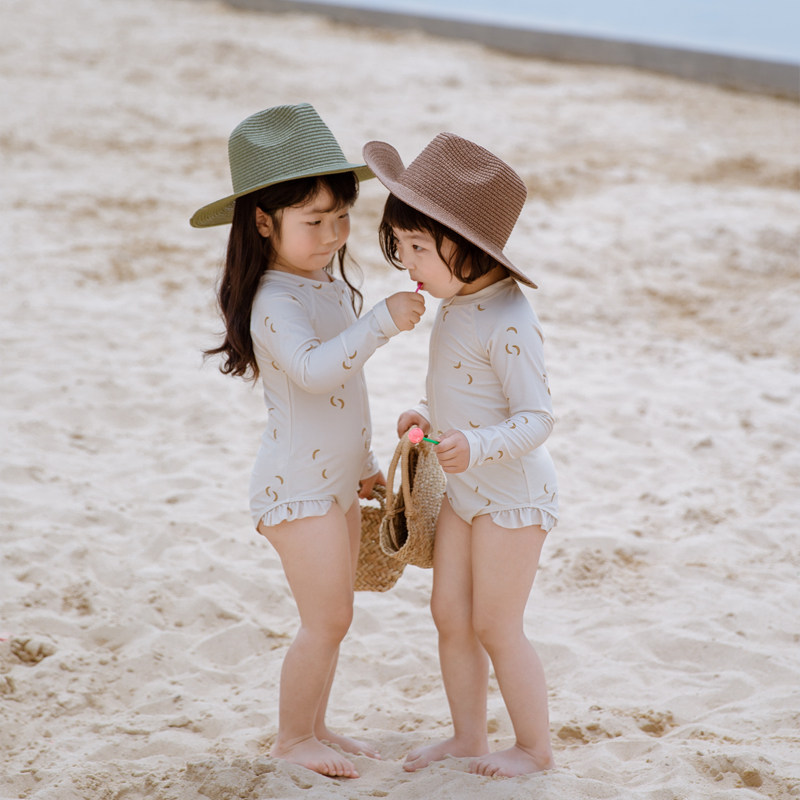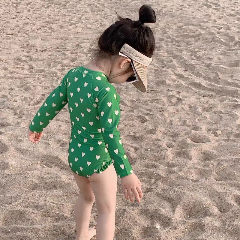 温泉度假 泳衣速干防晒小女孩游泳碎花边可爱泳装 女童夏季 连体长袖