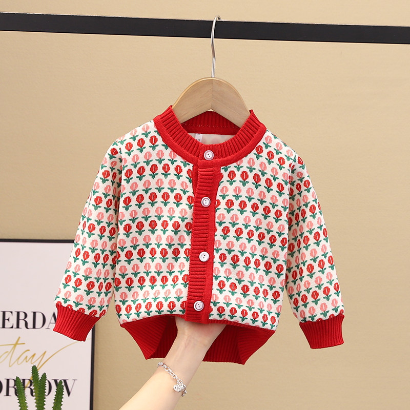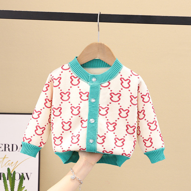 深秋冬装 儿童加绒加厚针织衫 宝宝外套一体绒 2023新款 女童毛衣开衫