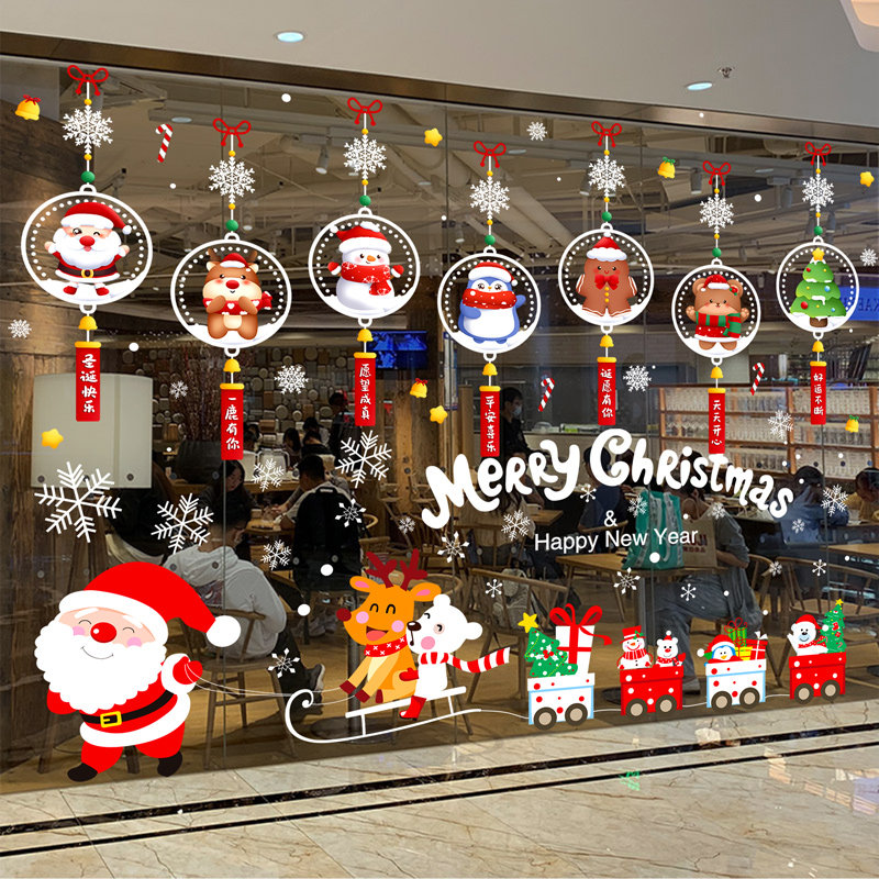 元 饰品静电贴纸圣诞树雪花场景布置店铺橱窗贴玻璃门贴 旦圣诞节装