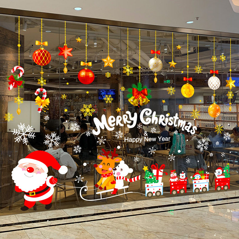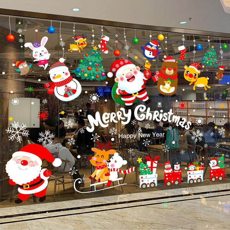 圣诞节装 饰品静电贴圣诞老人树窗户橱窗贴玻璃门贴纸场景布置挂件