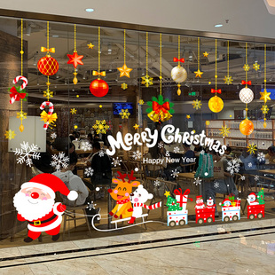 圣诞节装 饰品2026静电橱窗贴画玻璃门贴纸场景布置圣诞老人树氛围