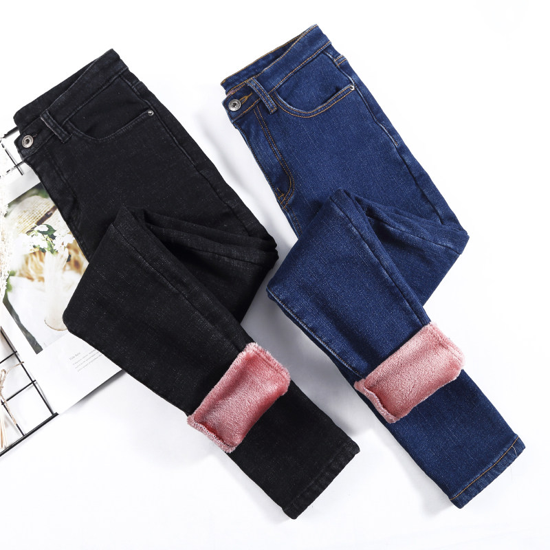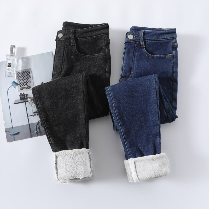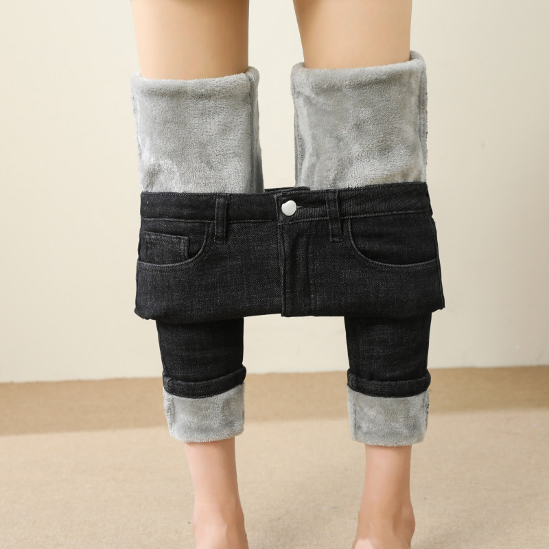 紧身一体绒小脚裤 加绒牛仔裤 加厚高腰显瘦修身 2025年新款 女士冬季