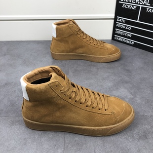 休闲鞋 加绒保暖真皮时尚 韩版 百搭厚底高帮绑带板鞋 冬季 潮男鞋 新款