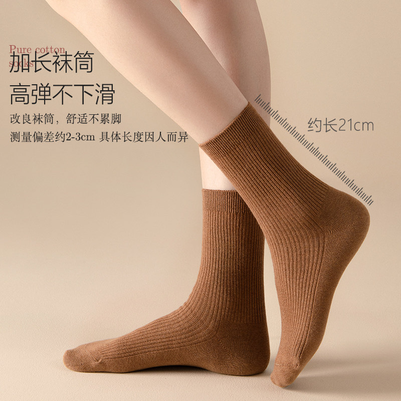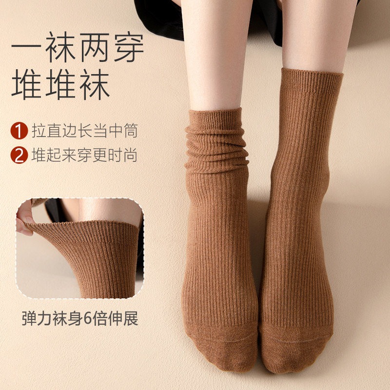 堆堆袜子女秋冬季 黑色中筒袜纯棉女袜长筒袜全棉外穿日系ins长袜