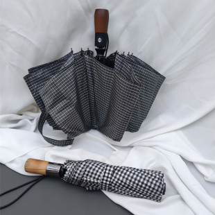 经典 黑白格子禁欲系10骨抗风全自动雨伞大复古男女通用折叠伞