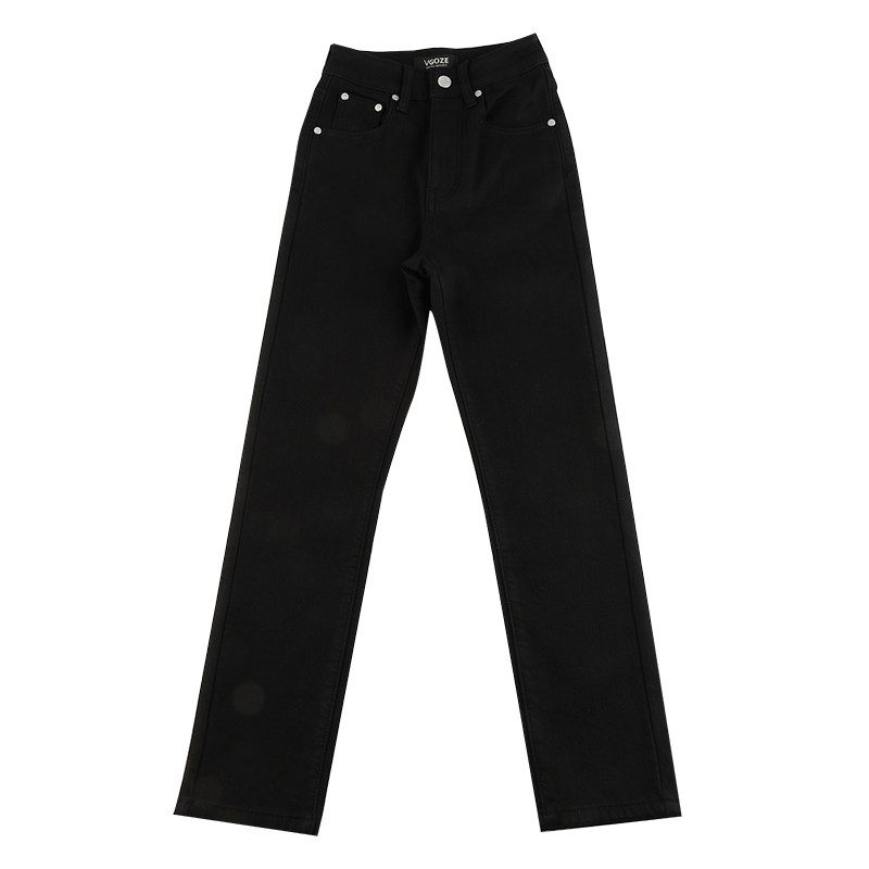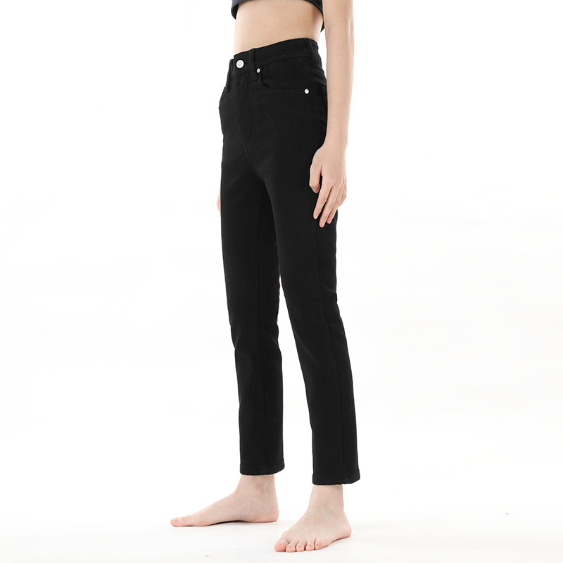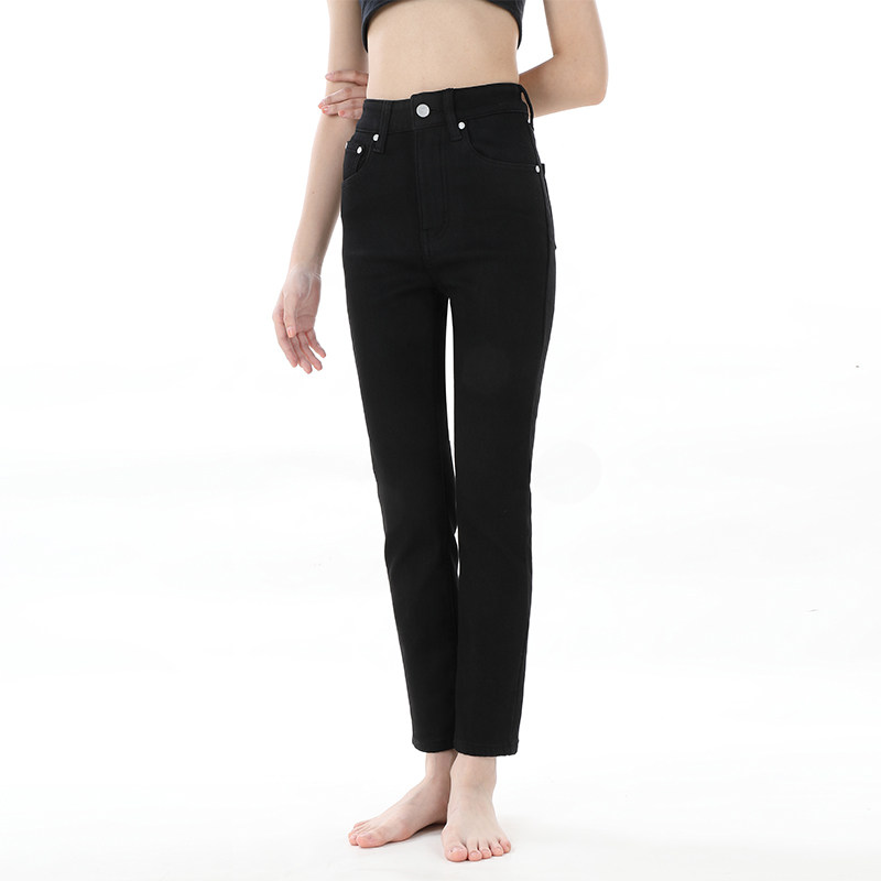 双扣高腰显瘦百搭长裤 李李服饰韩漫掐腰加绒微喇牛仔裤 女2025冬季