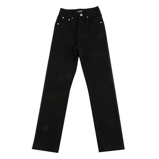 全棉高个子长裤 pusumede黑色阔腿牛仔裤 女复古宽松直筒高腰休闲裤
