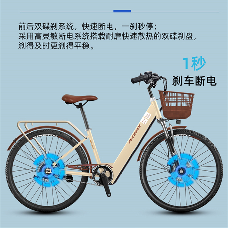 凤凰新款 国标通勤电动自行车锂电池小型电动车助力脚踏电瓶车