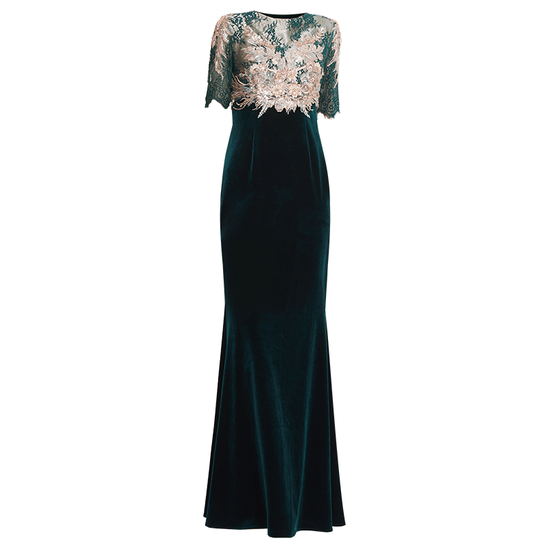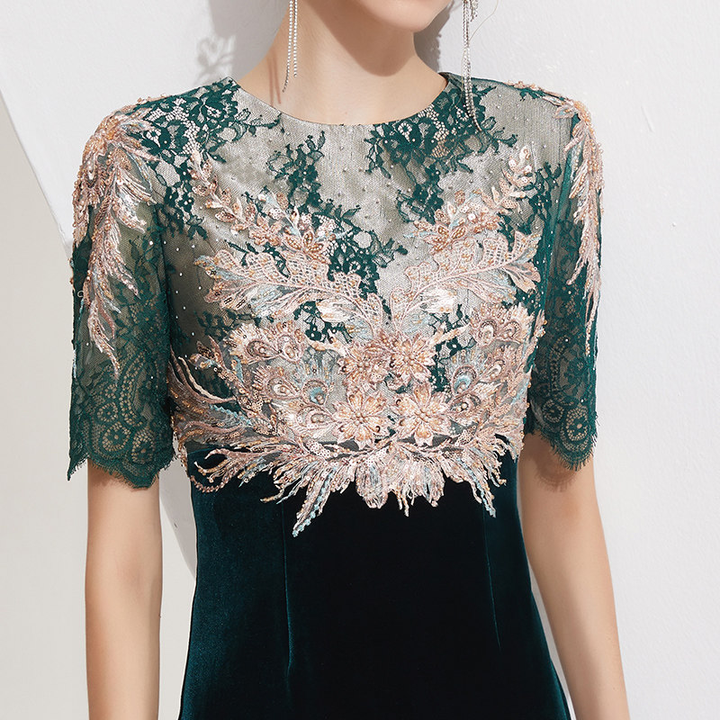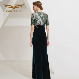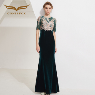 创意狐2025新款 主持人演出服长裙显瘦连衣裙 丝绒年会晚礼服女新款