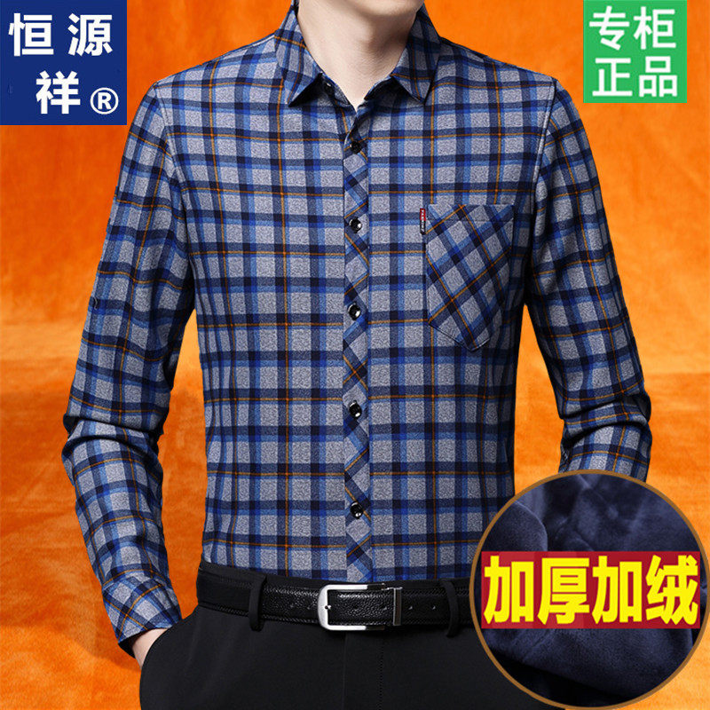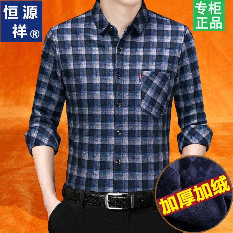 牛津纺加绒加厚保暖上衣全棉休闲衬衣 衬衫 保罗秋冬纯棉长袖 男士