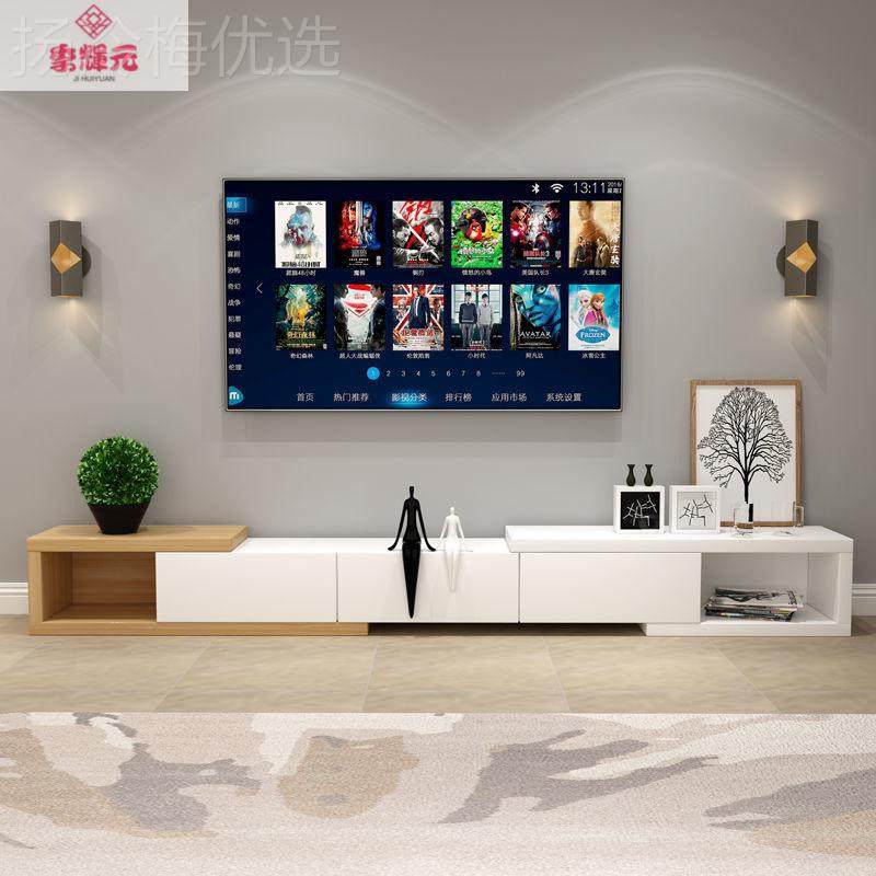 电视柜茶代几组合现子简约小户型客厅柜缩伸简易奶油卧KZL室窄电