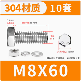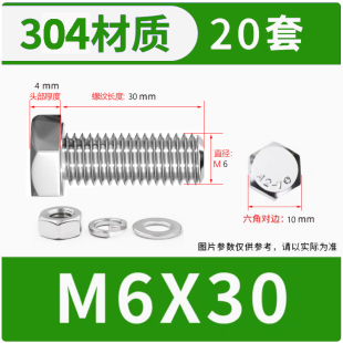 奥展304不锈钢外六角螺栓螺母弹簧垫平垫组合套餐M3 M14常用螺丝