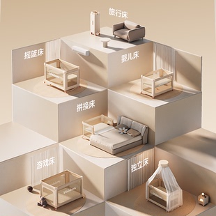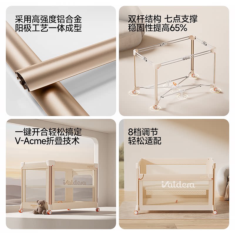 valdera瓦德拉魔方婴儿床可移动折叠拼接大床多功能便携宝宝床