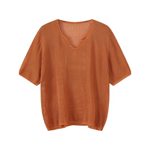 时尚 毛针织衫 镂空丁达尔风25017 V领套头款 AOSER短袖