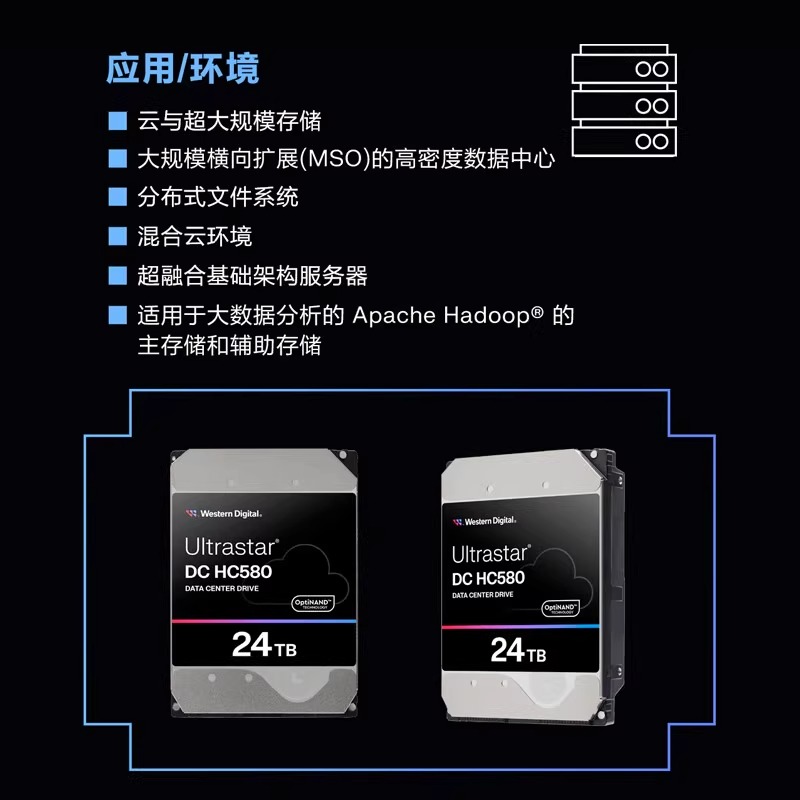 24TB企业级机械硬盘垂直记录cmr WUH722424ALE6L4 西数HC580
