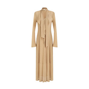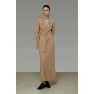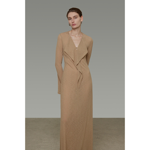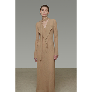 显瘦荷叶边长裙 修身 UNSPOKEN设计感飘带V领连衣裙女2026春季 新款