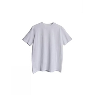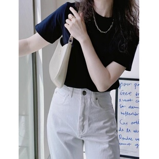 基础款 打底衫 上衣 正肩t恤女夏纯棉纯色半袖 高级感白色半高领短袖