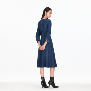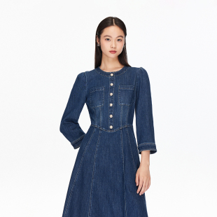 Vero 收腰明线牛仔裙325342017 Moda连衣裙2026春夏淑女风七分袖