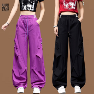 裤 大码 女夏新款 速干跳舞团体长裤 女 鬼步舞健身操广场舞裤 伞兵工装