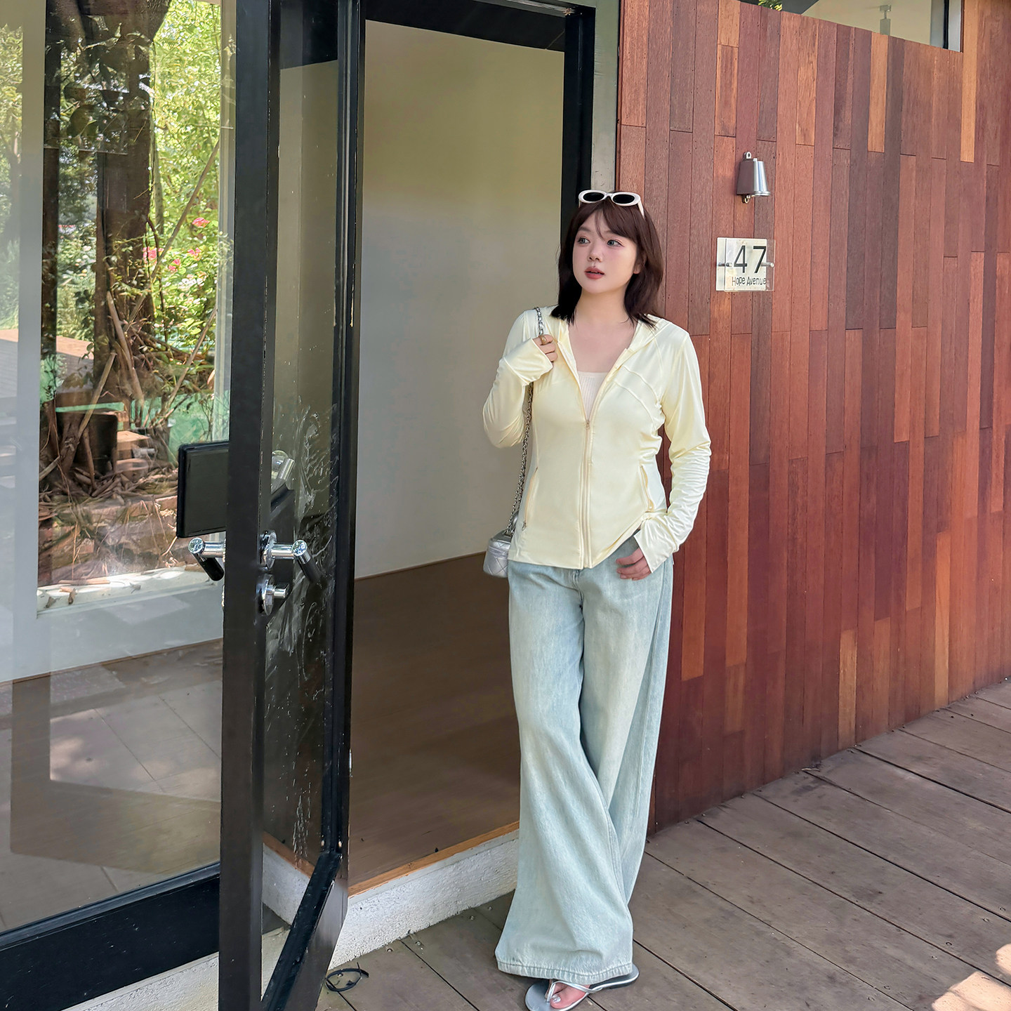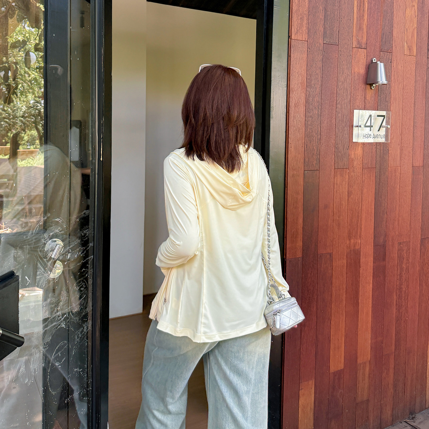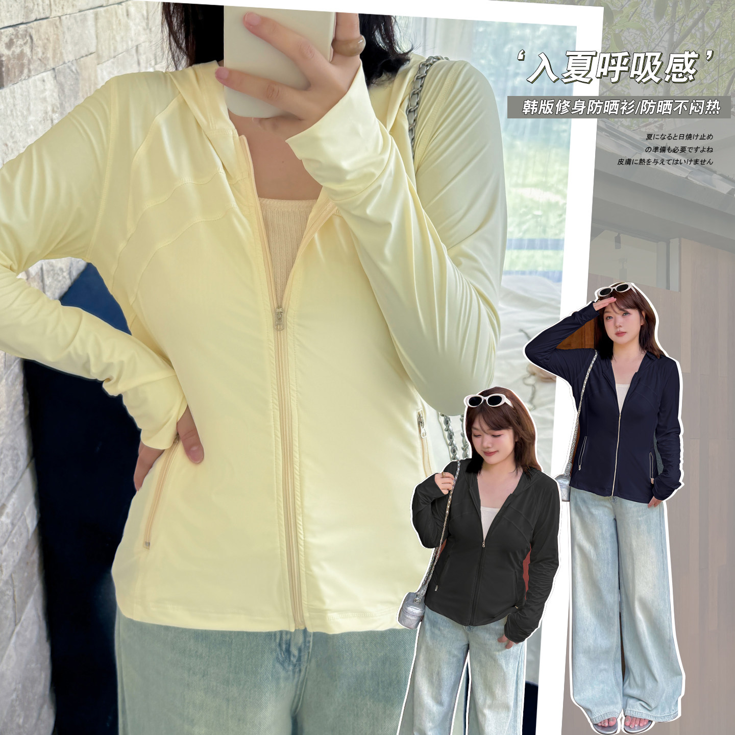 夏款 胖妹妹微胖加大码 连帽防shai衫 通勤修身 弹力收腰空调外套 韩版