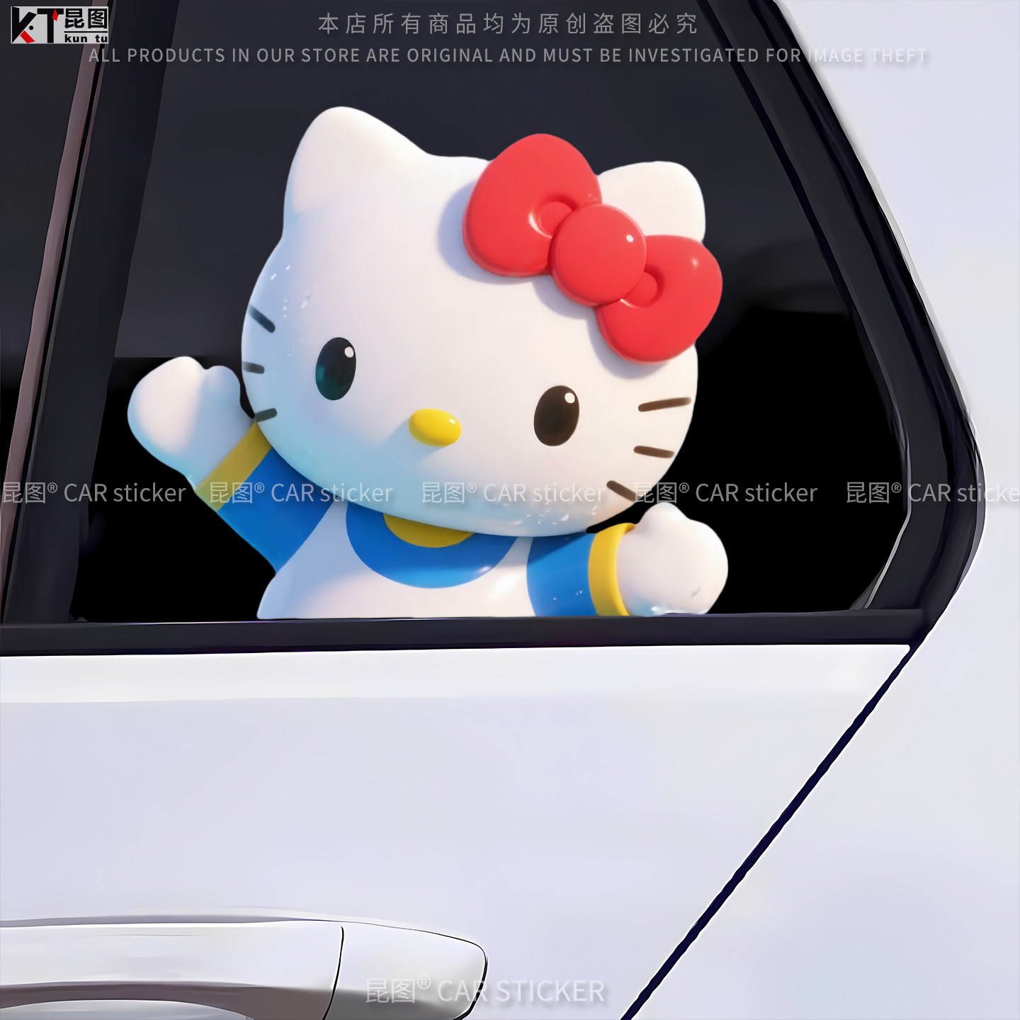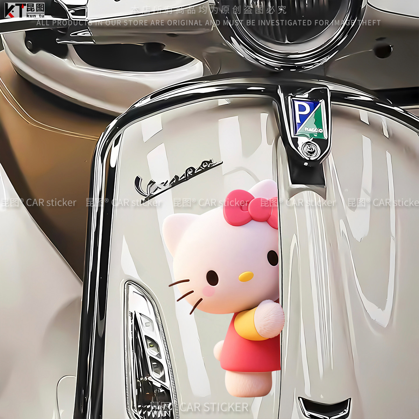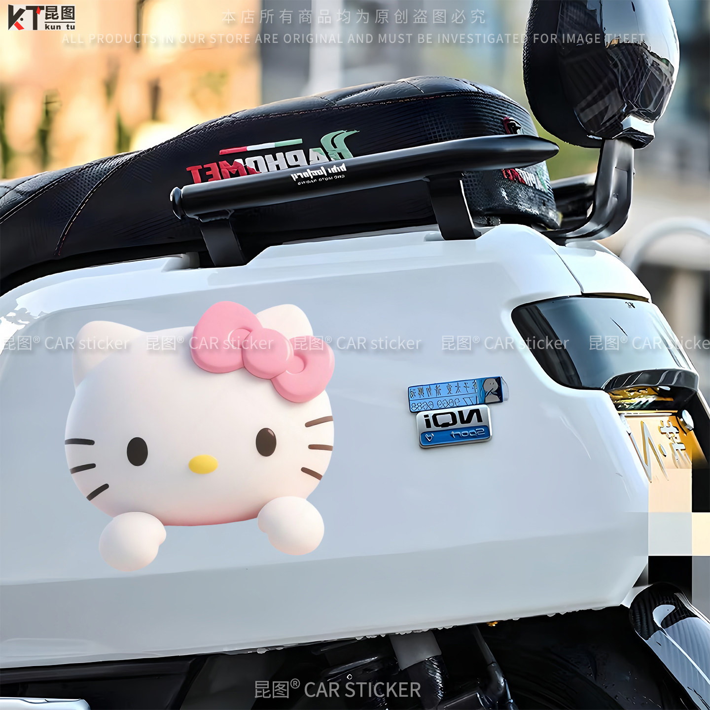 创意KT猫车窗贴电动车装 饰贴画卡通可爱kt猫电瓶车防水汽车贴纸