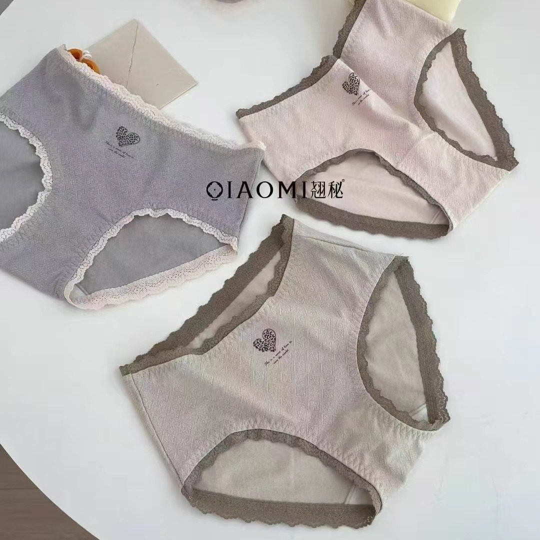 蕾丝花边三角裤 古早小清新森系甜美少女加长裆内裤 4条装 杏粉小花
