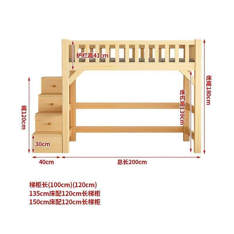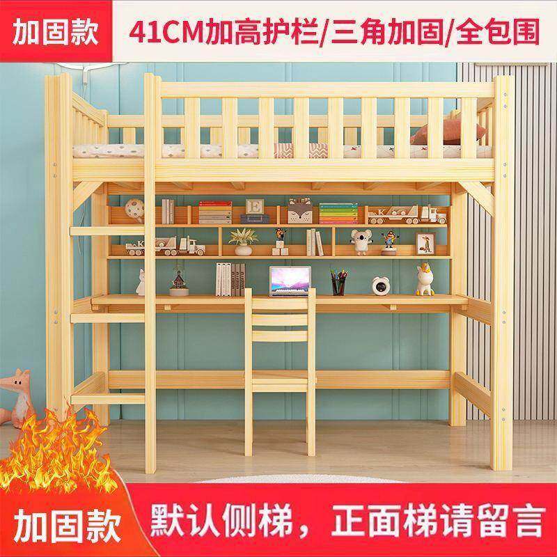 实间木高架床多功能儿童成人床上带下床省68130空组上床下桌书架