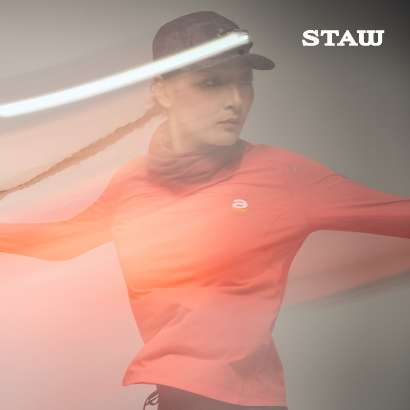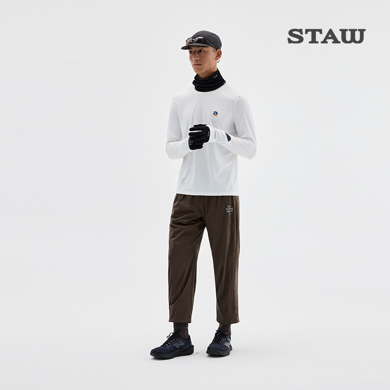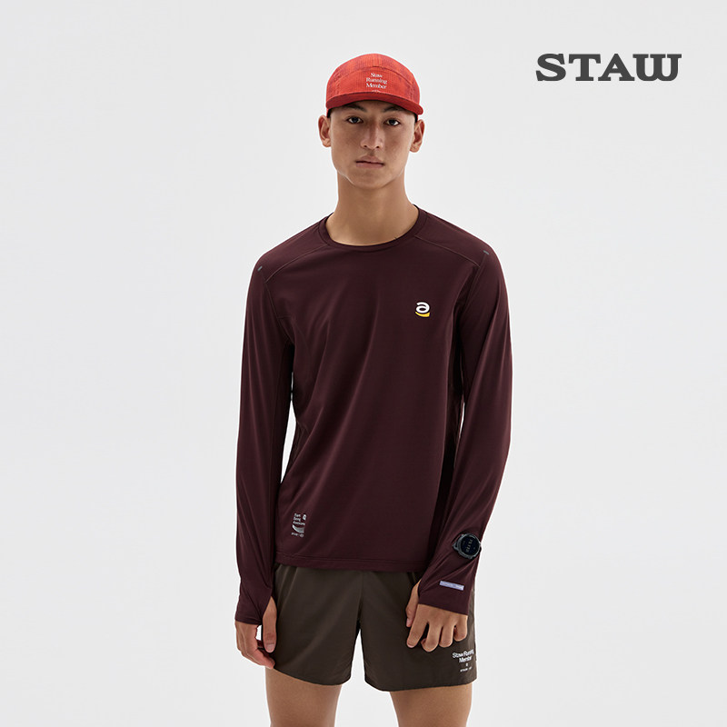 STAW世拓逐日方格15度2.0跑步运动长袖 T恤男抗菌休闲训练速干衣女