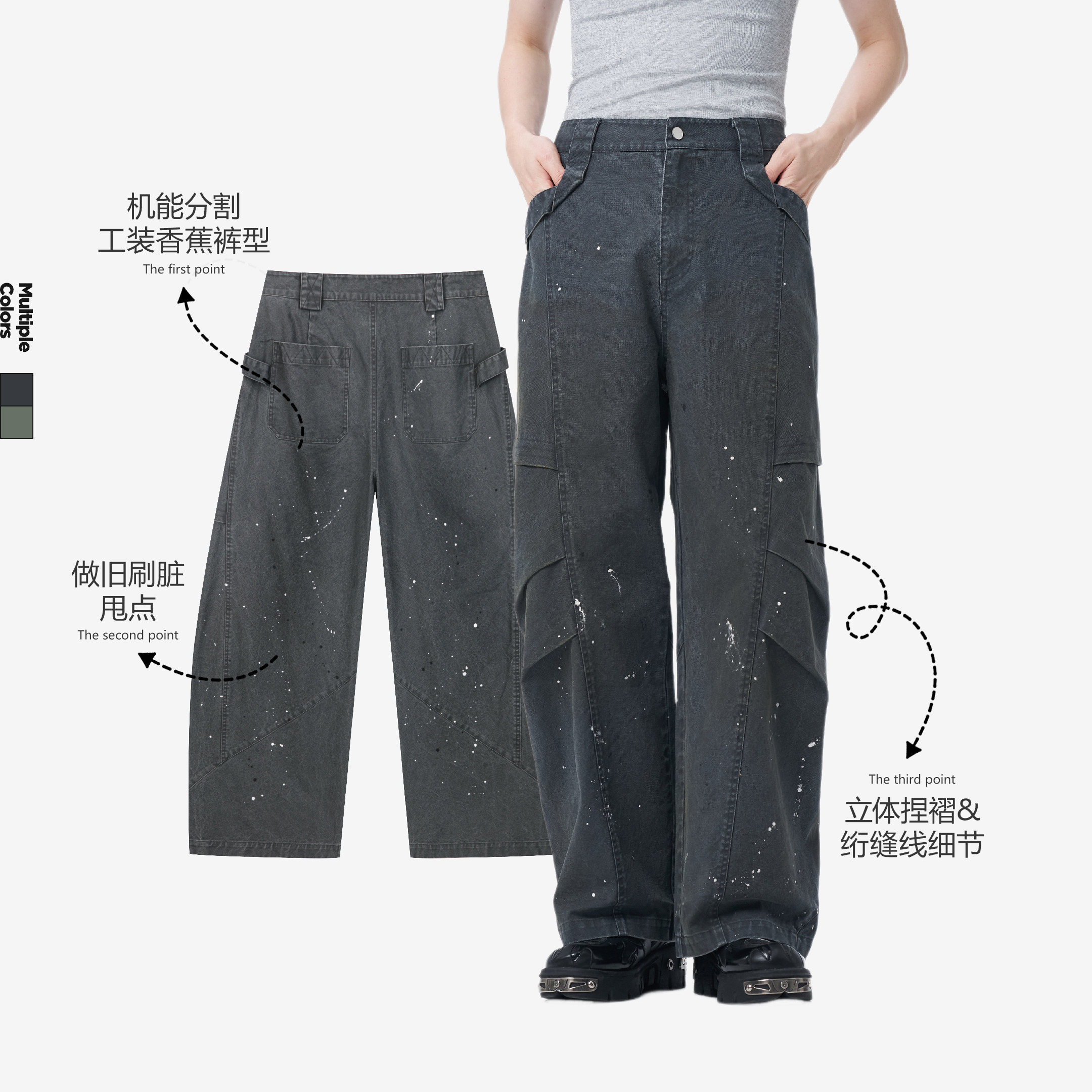 长裤 INXX美式 男做旧刷脏甩点设计感香蕉裤 裤 街头潮牌工装