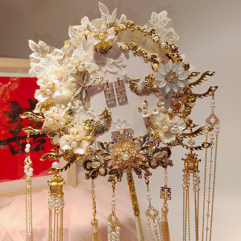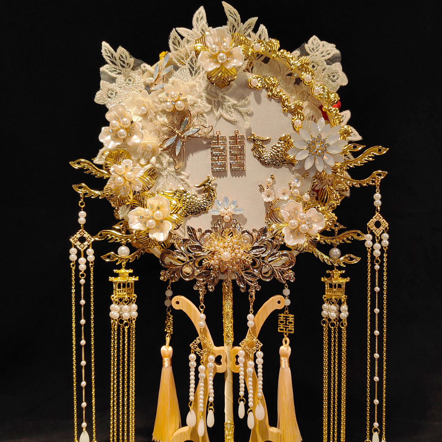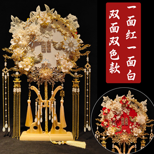 yh原创手作秀禾喜扇双面双色婚礼手工diy材料包中式 团扇新娘结婚