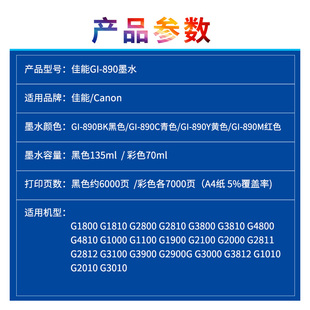 G4810打印机填充890墨水 G4800 兼容佳能GI890墨水G3800 G3810