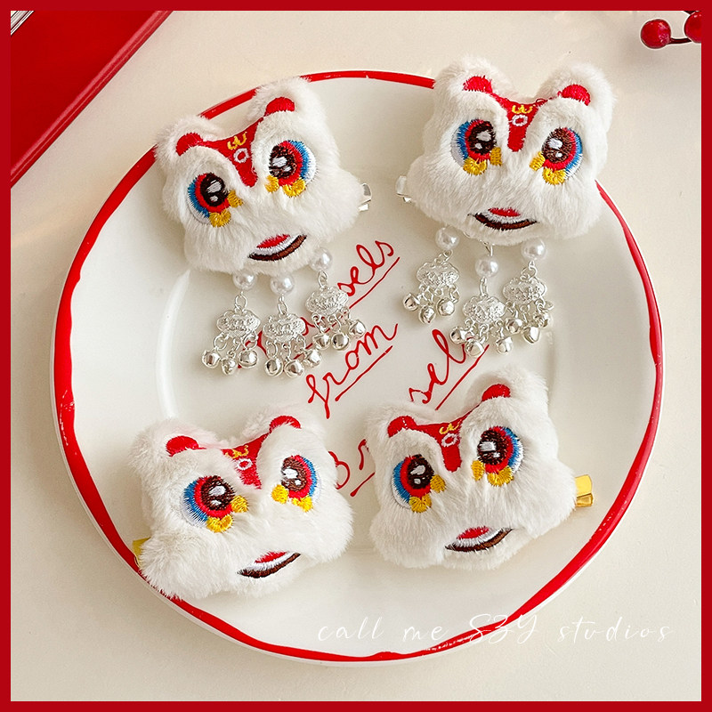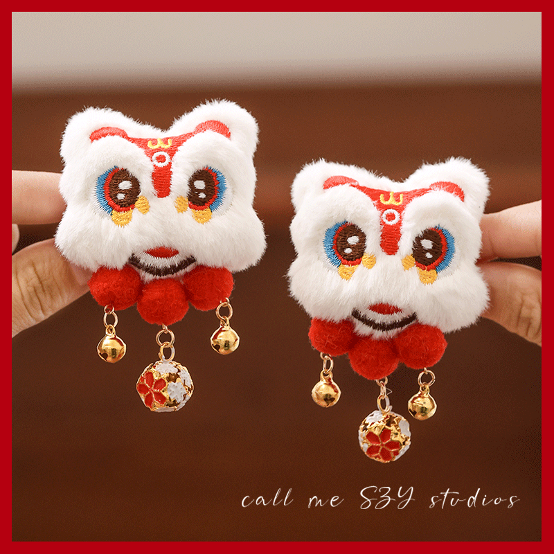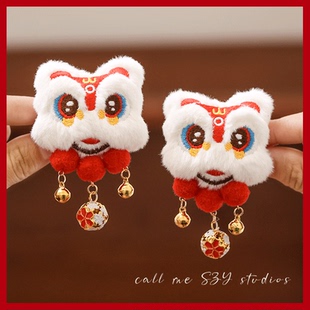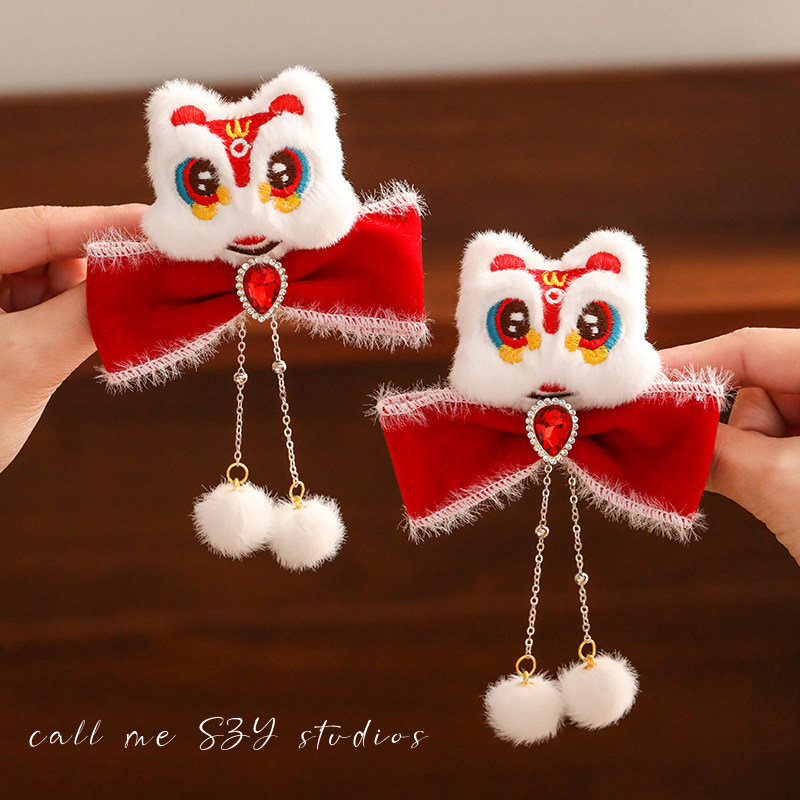 醒狮流苏铃铛发夹过年发饰新年儿童发卡中国风女宝宝古风汉服头饰