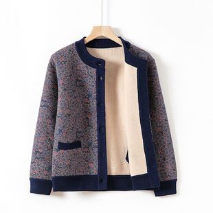 保暖奶奶装 外套老太太开衫 加厚加绒上衣女 冬季 中老年人气质妈妈装