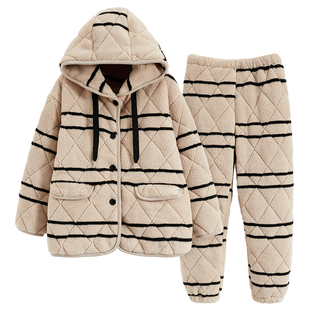 雪尼尔半边绒条纹加厚保暖家居服套装 Gukoo 果壳睡衣女冬款