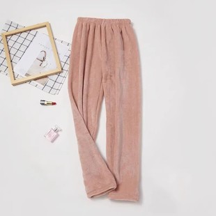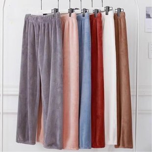裤 睡裤 珊瑚绒冬季 直筒散口宽松大码 子 女秋冬加厚特厚法兰绒长裤