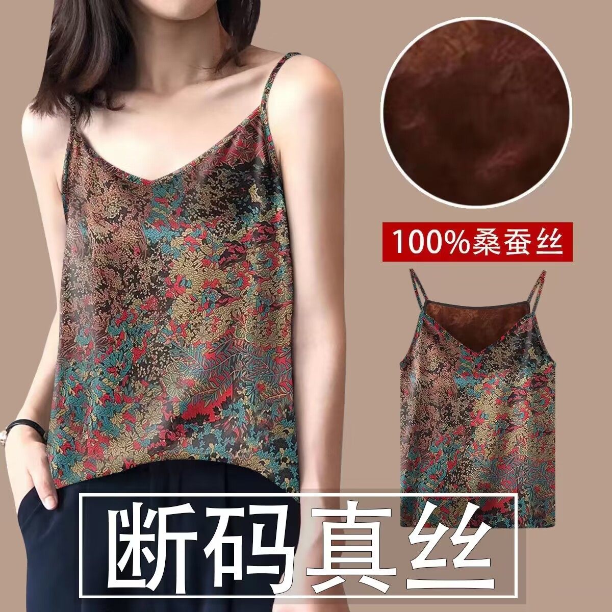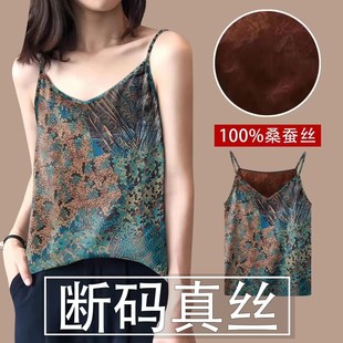 真丝花萝红云纱吊带衫 显瘦100%桑蚕丝背心 女士两面穿打底内搭修身