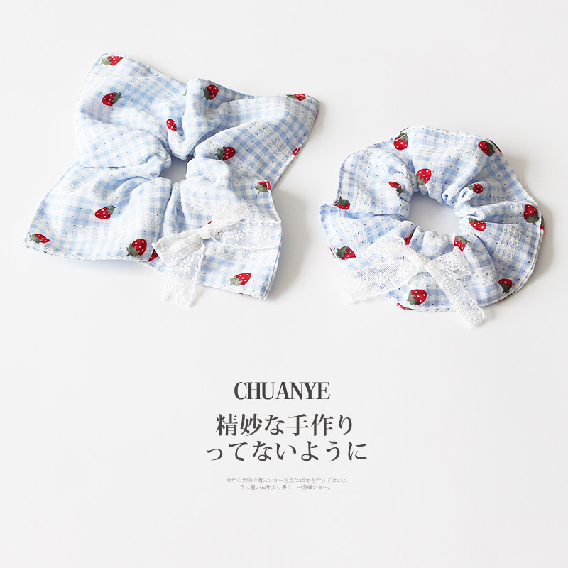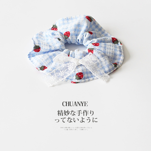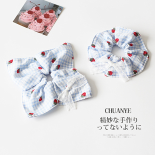 头绳高马尾不塌发饰 可爱时尚 川野法式 草莓蓝色格子方巾发圈女新款