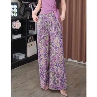 女高腰宽松显瘦休闲百搭长裤 国潮复古印花直筒阔腿裤 子潮 新款 夏季