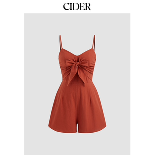 114622936 连身裤 CIDER棉蝴蝶结抽褶连体短裤 收腰短款