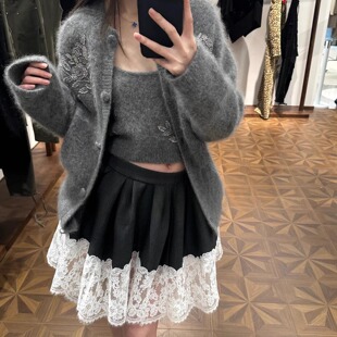 吊带 钉珠针织开衫 蕾丝拼接打褶半裙 25AW新款 现货MARKGONG