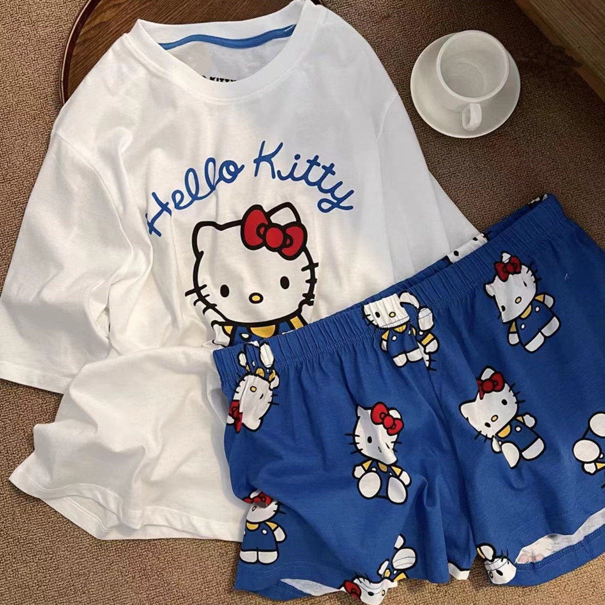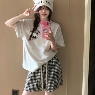 宽松家居服套装 韩版 纯棉可外穿网红风大码 短裤 ins睡衣女夏天短袖